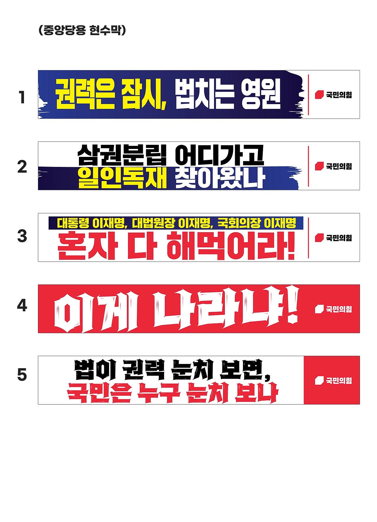 위와 같이 메시지를 판다하기 이전에 메신저(여기서는 정치인들)가 했던 말들과 행동을 가지고 메신저를 판단하는게 먼저다. 다른 예시를 들기 위해 국민의힘 현수막을 들고왔다.